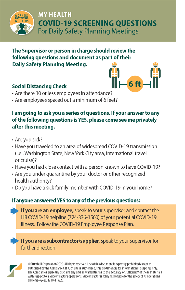 3.5” x 6”, Review With All Employees On Site at the Daily Safety Meeting